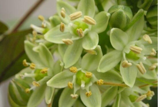 虎眼万年青有着直径长达一米的鳞茎球,因每生长一枚叶片,就会长出几个小子球,形似虎眼,故而得名虎眼万年青。剥除鳞茎表层后,旧颜换新颜,鳞茎碧绿,秀丽雅致,所谓颜如玉。