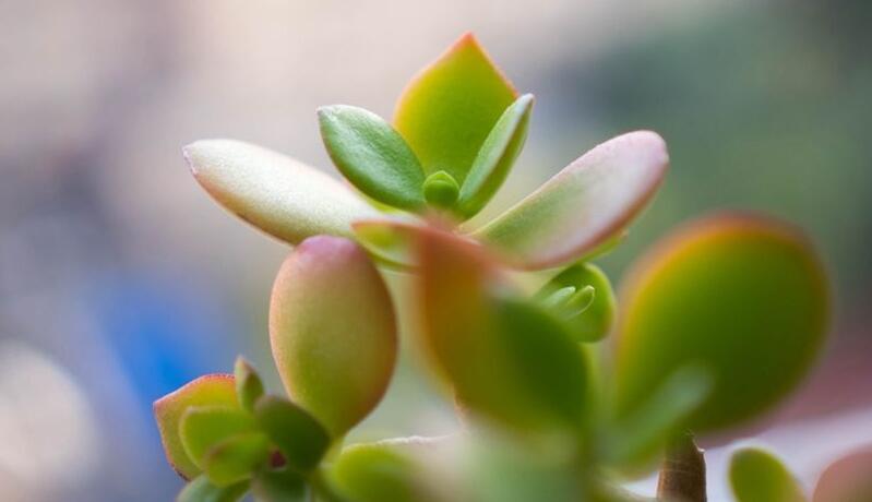 玉树的叶子的边缘的地方是有着红颜色的边。而燕子掌的叶片上的边缘的地方则是没有的。